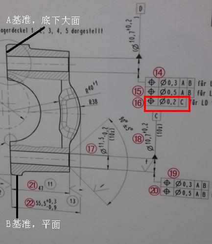 在三坐標建立坐標系的時候,以A基準平面確定Z軸,B基準平面確定Y軸,C基準圓柱確定坐標原點.這樣再評價D圓柱相對C的位置度0.2,這是正確的,因為這樣評價時到時候給出兩孔Y向理論距離就行了,不需要再用C、D孔構鍵線來確定Y軸.至于C、D孔位置度都是A和B基準下進行評價的,所以應當以B基準做軸向.